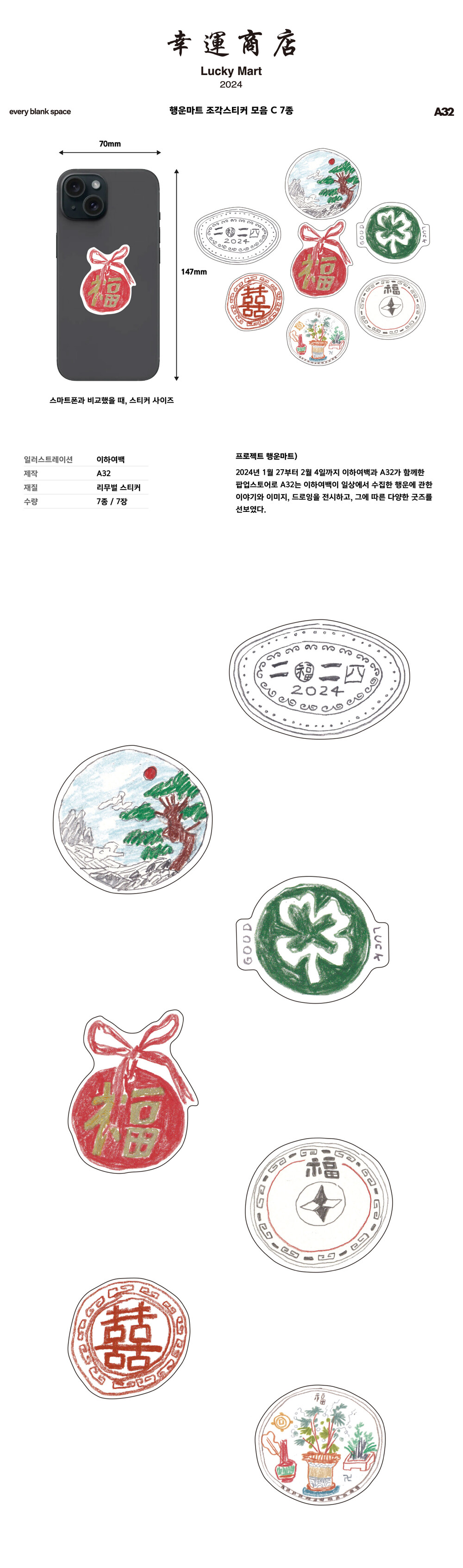 이하여백 행운마트 조각스티커C 7종