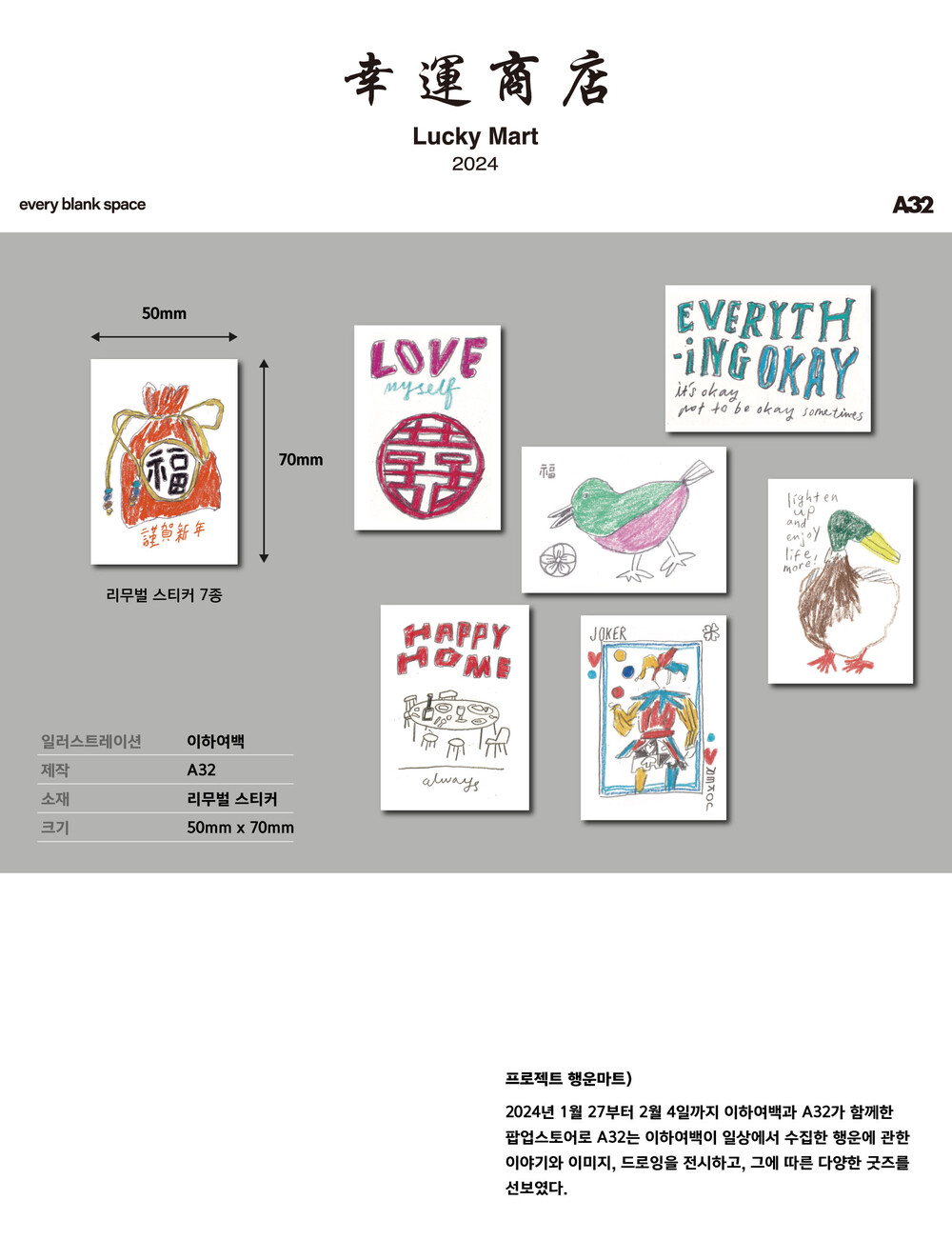 이하여백네모스티커7종