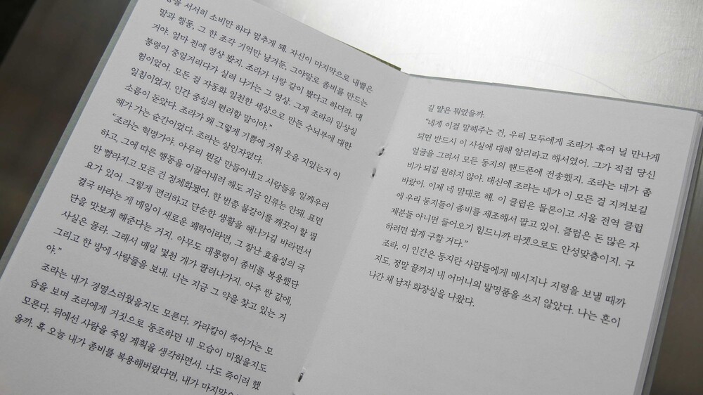 히로시 : '조라는 밤바다에 있지'를 쓸 때는 올바른 삶이 무엇인지에 대해 독자들과 함께 고민하고 싶었습니다. 옳다고 생각하는 삶을 구현하기 위해서 나는 어디까지 할 수 있는가? 그리고 그 기준은 누가 정하고 허용하는지.그 하위 분과로 예술은 무엇인지에 대한 것도 함께 이야기 나누고 싶었습니다.
