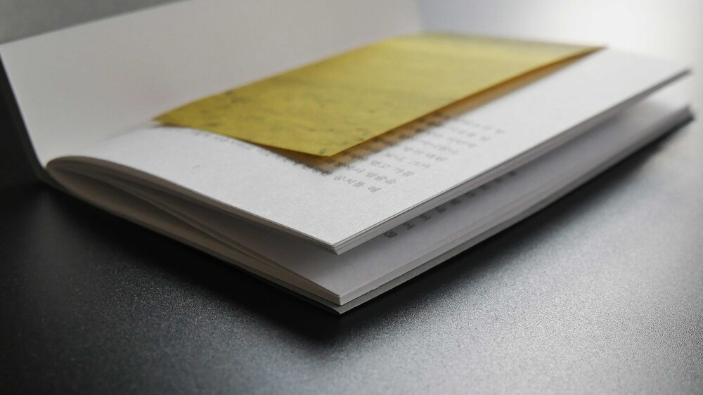 표지를 길게 감싸 제본된 방식이 노출되지 않도록 제작하였습니다.