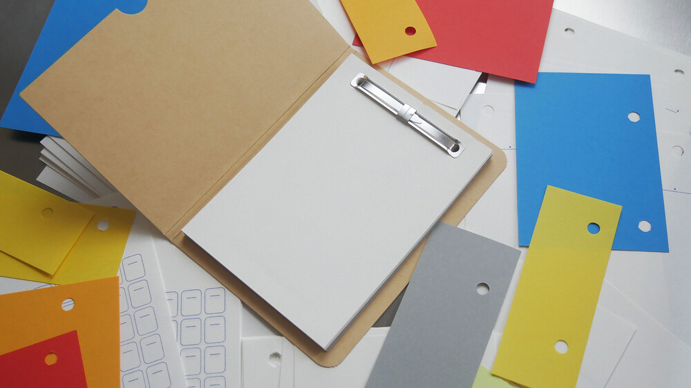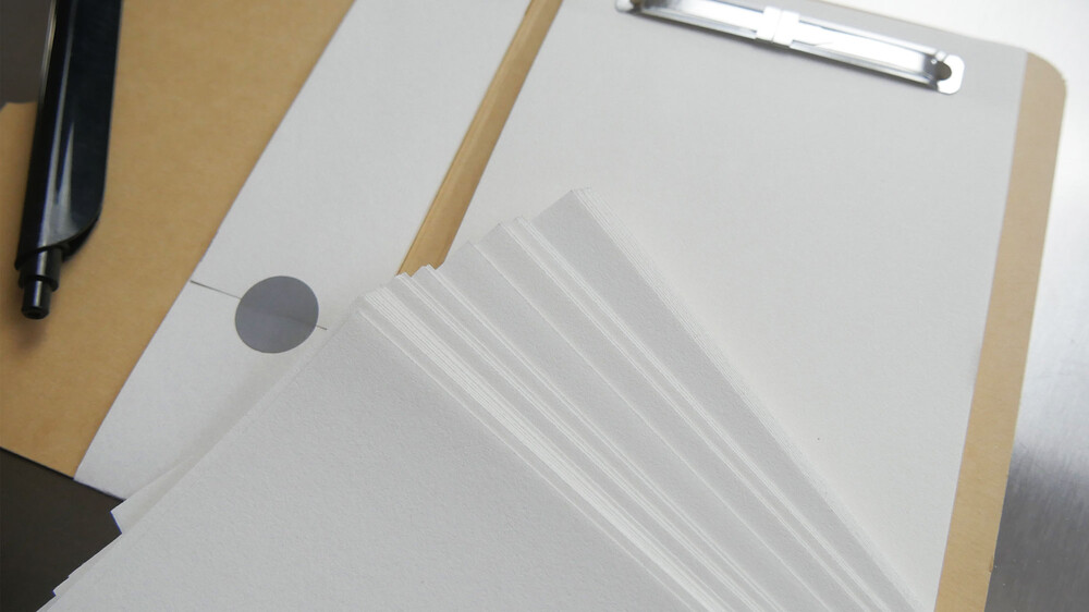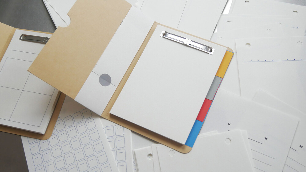 파일에 사용된 종이는 350g/m²평량의 종이로 신문, 잡지, 우유팩 등의 재생지로 만들어진 친환경 보드지입니다.